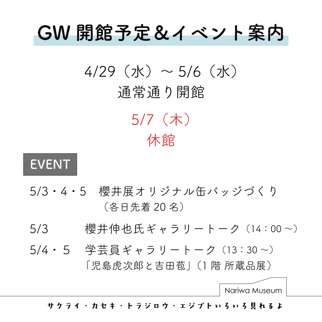 ●5/3・4・5 櫻井展オリジナル缶バッジづくり(各日先着20名)