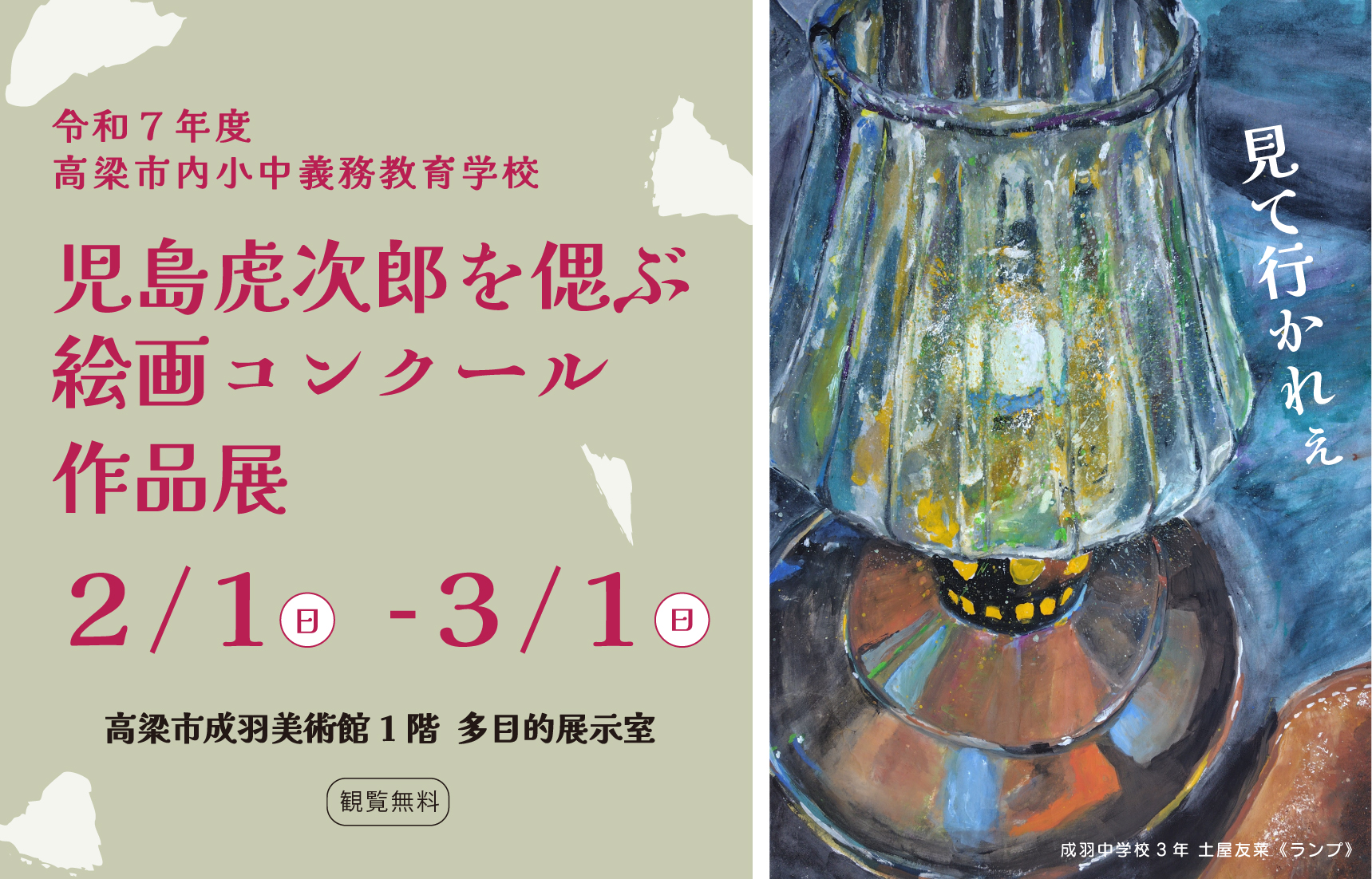 毎年開催している高梁市内小中学校および義務教育学校の児童生徒が参加する「児島虎次郎を偲ぶ絵画コンクール」。2/1(日)~3/1(日)の間、入選作品を成羽美術館1階 多目的展示室で展示します。子どもたちの感性が滲み出る151点の力作をお楽しみください。